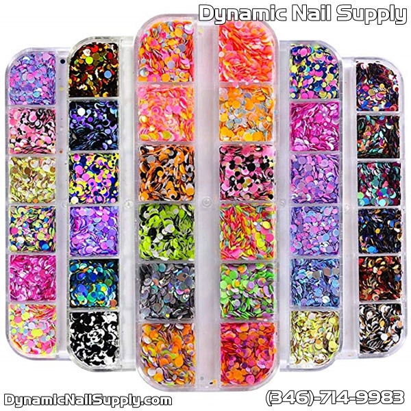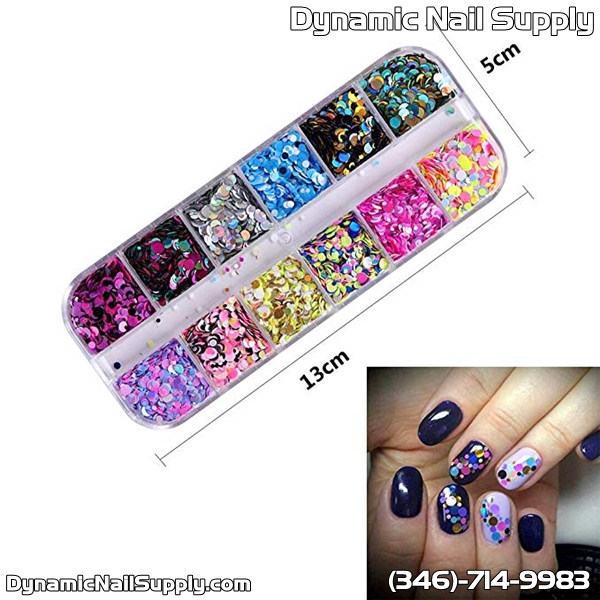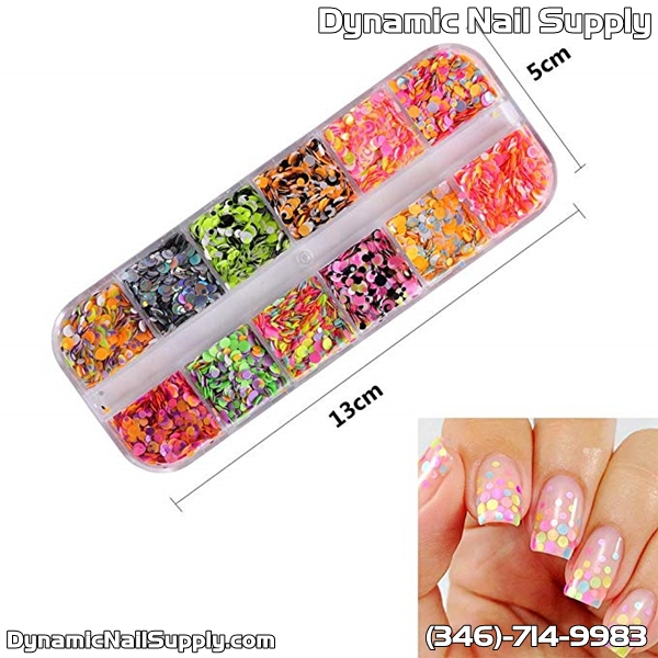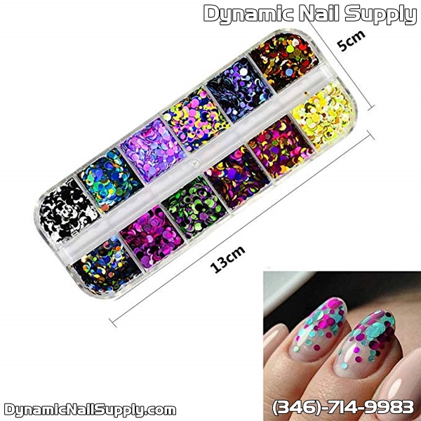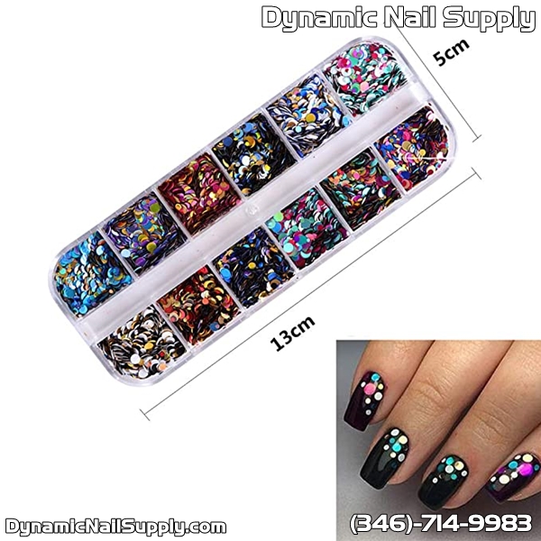 - PACKAGE INCLUDED – 5 box/set, each boxes with 12 grids, each grids with mixed colors sequins, you can make your nail arts you want. It is the perfect present.